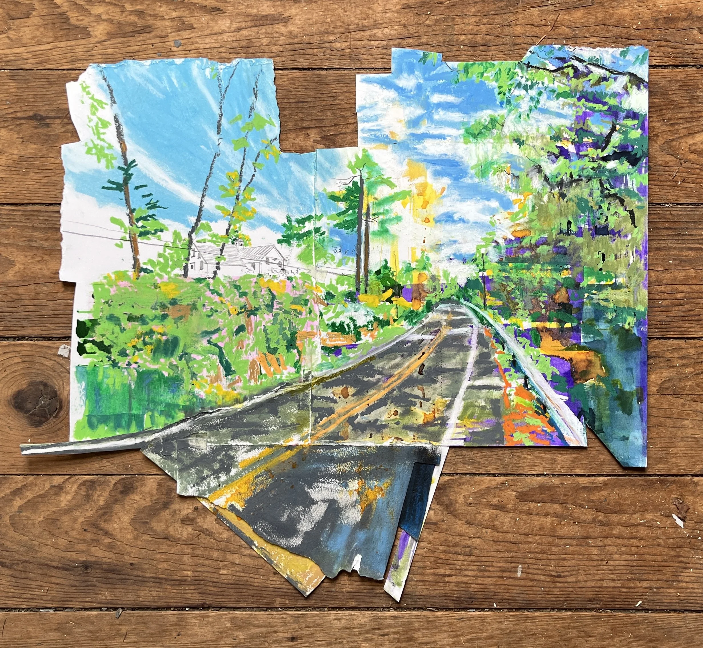 “Breakdown, 16” x 24” (approx), oil pastel + watercolor ink on paper, 2025